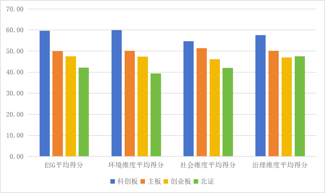 圖1 2024年各板塊A股上市公司ESG及各維度平均得分情況