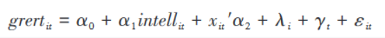 其中,下標i、t分別表示企業(yè)和年份。grertit為企業(yè)綠色轉型程度,用綠色專(zhuān)利申請量(包括綠色發(fā)明專(zhuān)利和綠色實(shí)用新型專(zhuān)利)占所有專(zhuān)利申請量(包括發(fā)明專(zhuān)利和實(shí)用新型專(zhuān)利)的比重來(lái)衡量(Yu C.H.et al.,2021)。intellit為企業(yè)是否實(shí)施智能制造虛擬變量,若企業(yè)已入選工信部發(fā)布的《智能制造試點(diǎn)示范行動(dòng)企業(yè)名單》,則intellit賦值為1,反之賦0。由于試點(diǎn)企業(yè)名單發(fā)布時(shí)間均集中于當年的第三季度和,第四季度,而企業(yè)在獲知進(jìn)入智能制造試點(diǎn)示范行動(dòng)名單后需要一定的時(shí)間來(lái)安裝智能制造設備、學(xué)習智能制造技術(shù),所以本文將試點(diǎn)時(shí)間向后推延一年,即以2016-2019年作為試點(diǎn)年份。